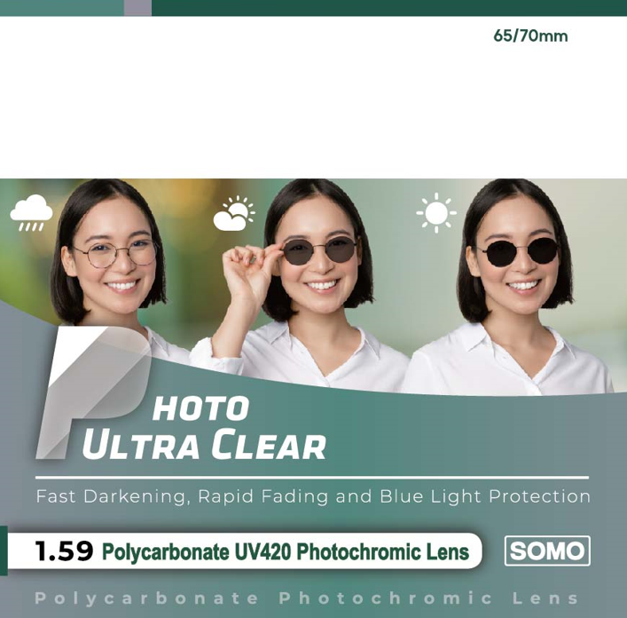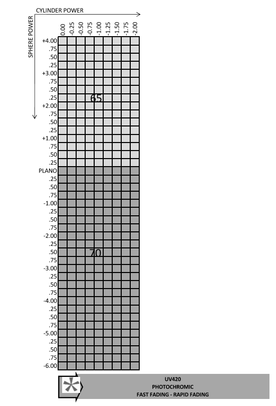 - Visible Light Transmittance: Being photochromic- initial is 88%; activated 19%.